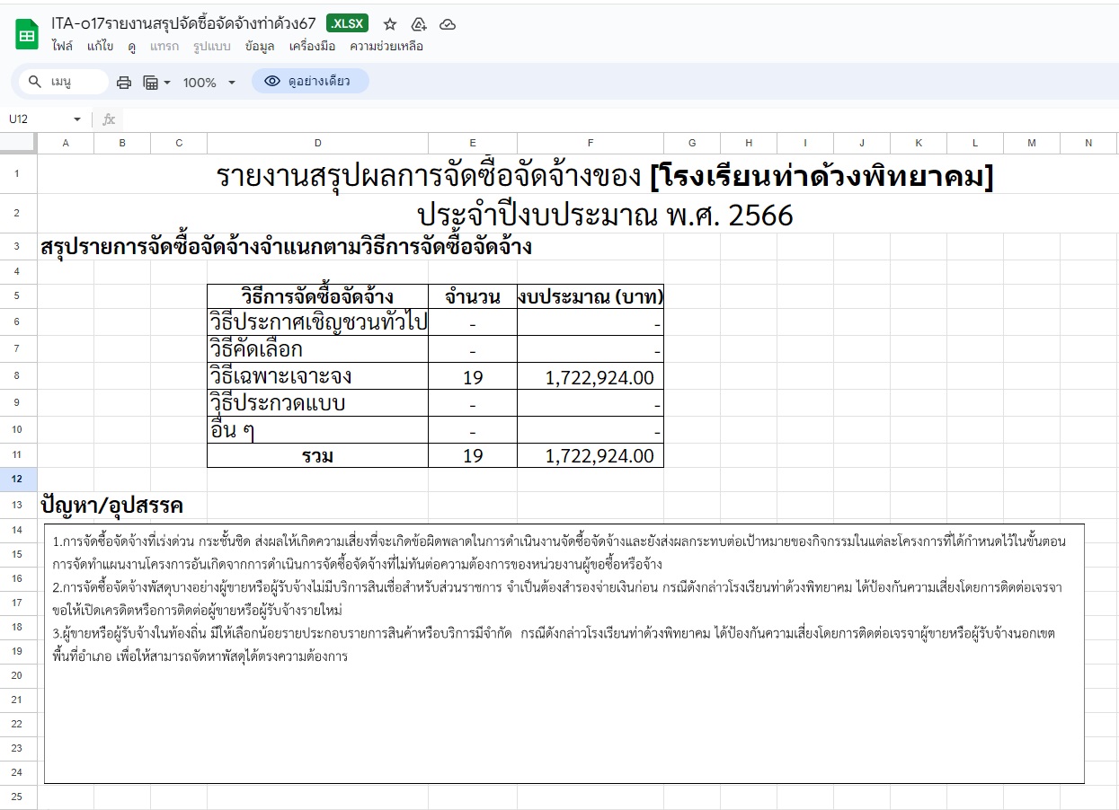 OIT17 รายงานสรุปผลการจัดซื้อจัดจ้างหรือการจัดหาพัสดุประจำปี