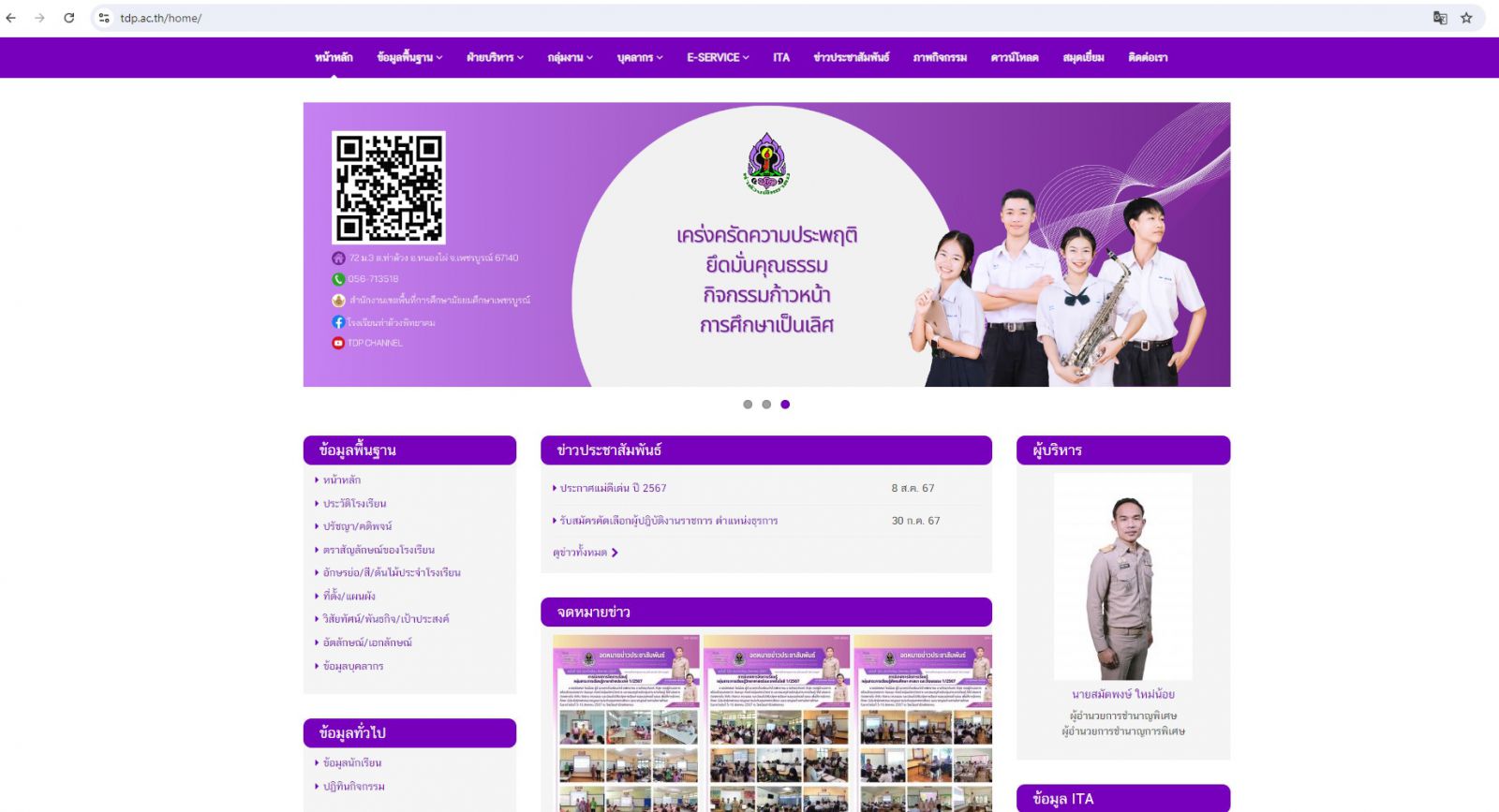 หน้าเว็บไซต์หลัก www.tdp.ac.th